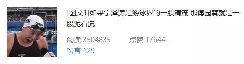 奥运会期间发文炒火了傅园慧,标题为“如果宁泽涛是游泳界的一股清流,那傅园慧就是一股泥石流”文章成网文爆款,单篇阅读量超过